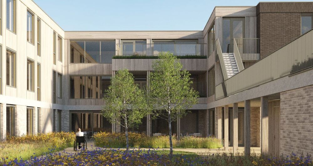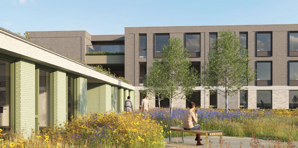 Het nieuwe gebouw verrijst achter het bestaande hoofgebouw en vervangt de huidige laagbouw-afdelingen. Die zijn niet meer up-to-date en toekomstbestendig.